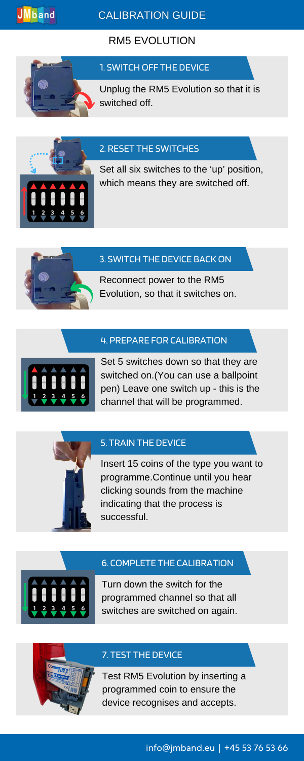 Volg deze gedetailleerde handleiding om je RM5 Evolution munt validator te kalibreren zodat je munten precies in het apparaat passen. Een juiste kalibratie zorgt ervoor dat het apparaat nauwkeurig de gewenste munten of jetons herkent en accepteert, wat cruciaal is voor optimale prestaties. Door deze stappen zorgvuldig te volgen, kunt u ervoor zorgen dat uw RM5 Evolution vlekkeloos en betrouwbaar werkt in uw specifieke toepassing.