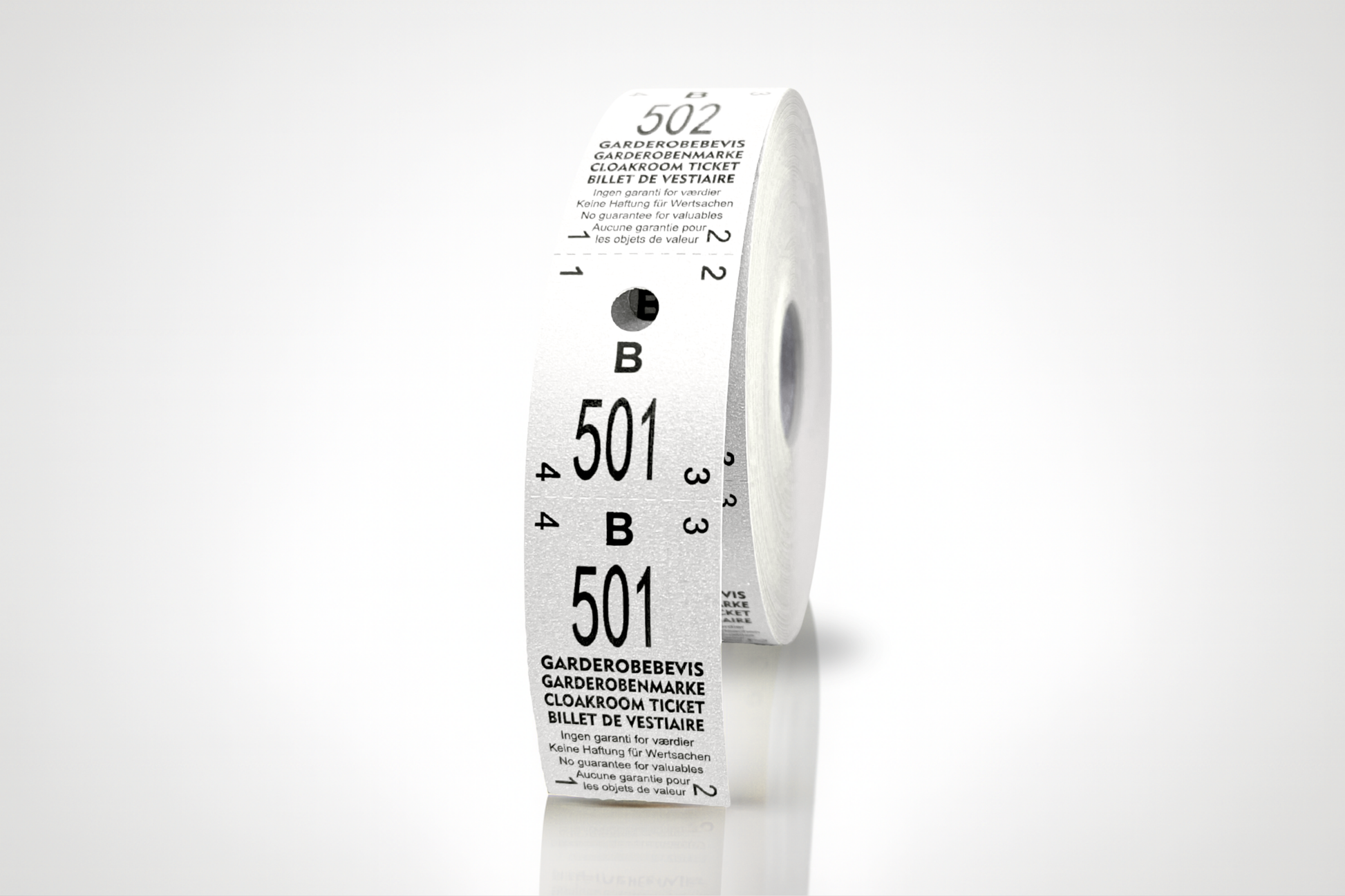 Elk ticket bestaat uit twee delen met hetzelfde nummer, zodat zowel gasten als personeel hun bovenkleding gemakkelijk kunnen terugvinden. Geleverd in sets van 500 stuks - direct klaar voor gebruik.